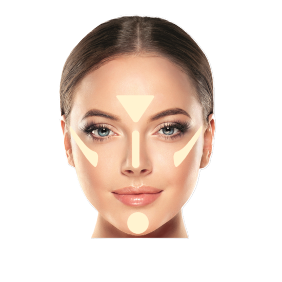 1. Aplicarea iluminatorului: Ia o cantitate mică de iluminator cu pensula fan, scuturând ușor excesul. Folosește mișcări ușoare și precise pentru a aplica iluminatorul pe zonele cheie ale feței, cum ar fi pomeții, puntea nasului, arcada sprâncenelor și deasupra buzei superioare.