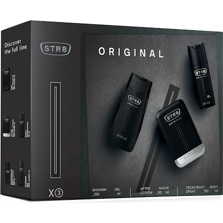 Set cadou: Lotiune After shave STR8, Original, 50 ml + Deodorant Spray STR8 Original, Barbati, 150 ml + Gel de dus STR8 Original, 250 ml